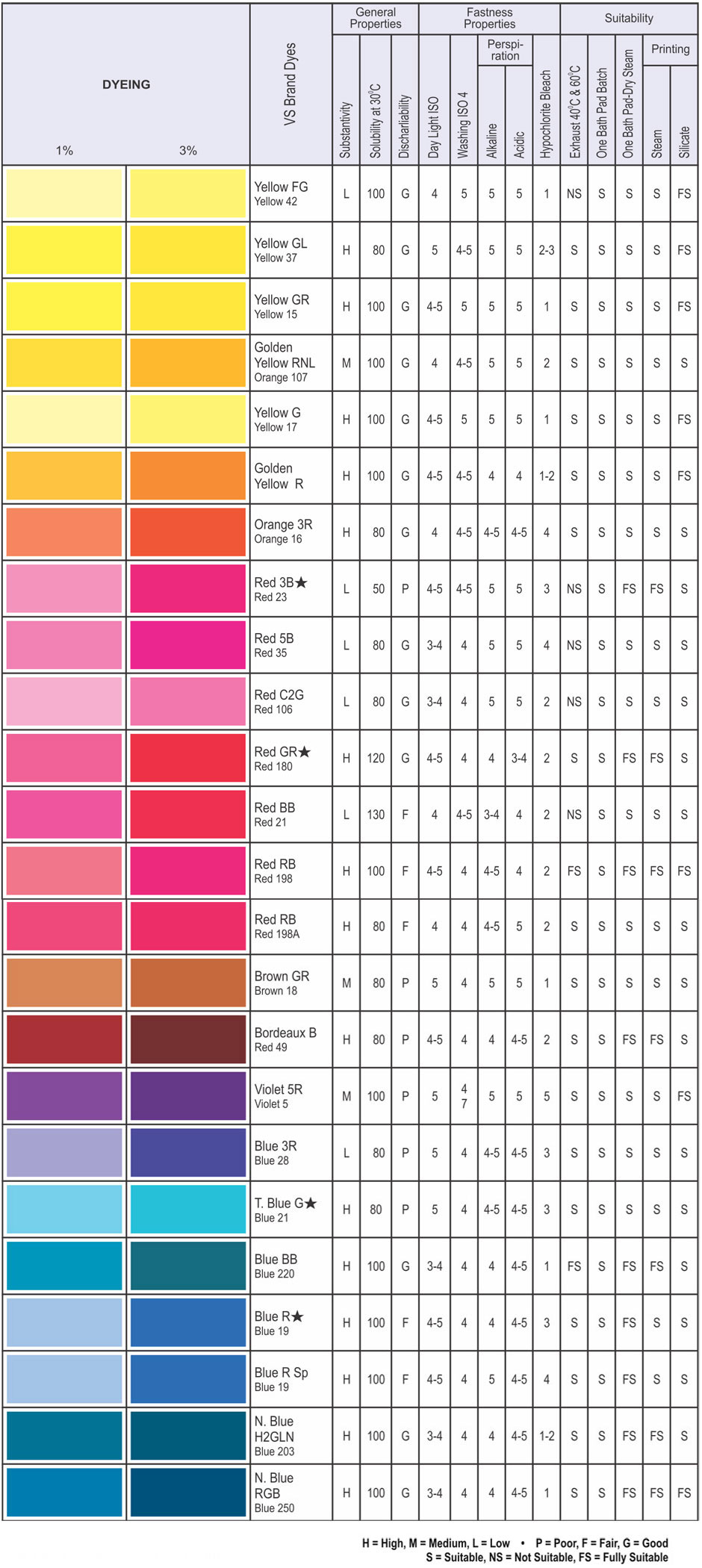 Application Suitability:- Exhaust dyeing, printing ,cold-pad – batch dyeing.